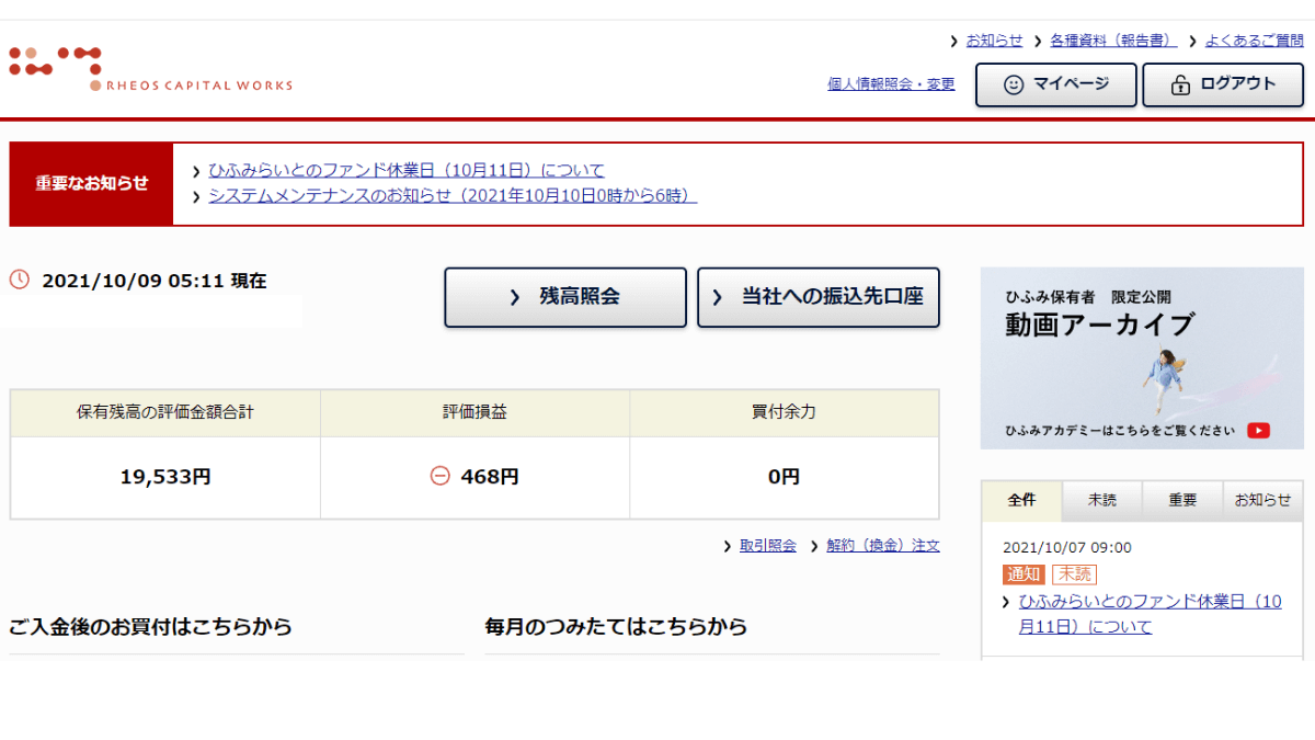 ひふみシリーズを投資運用会社から直接購入できると知り、直販の口座開設しました。